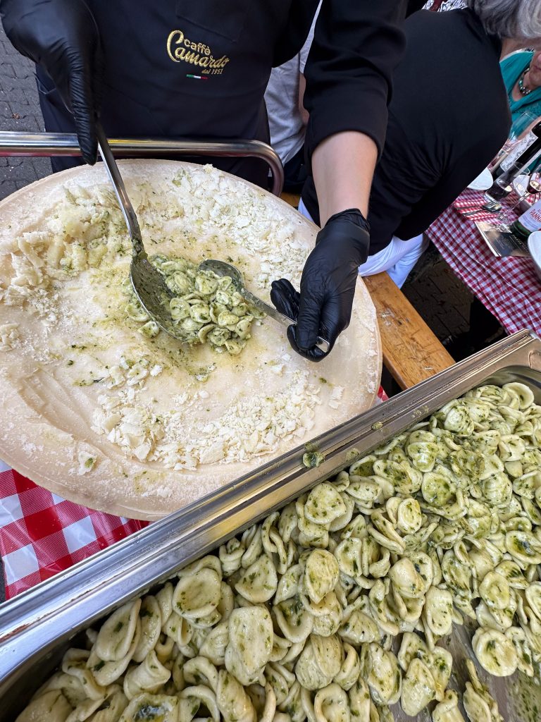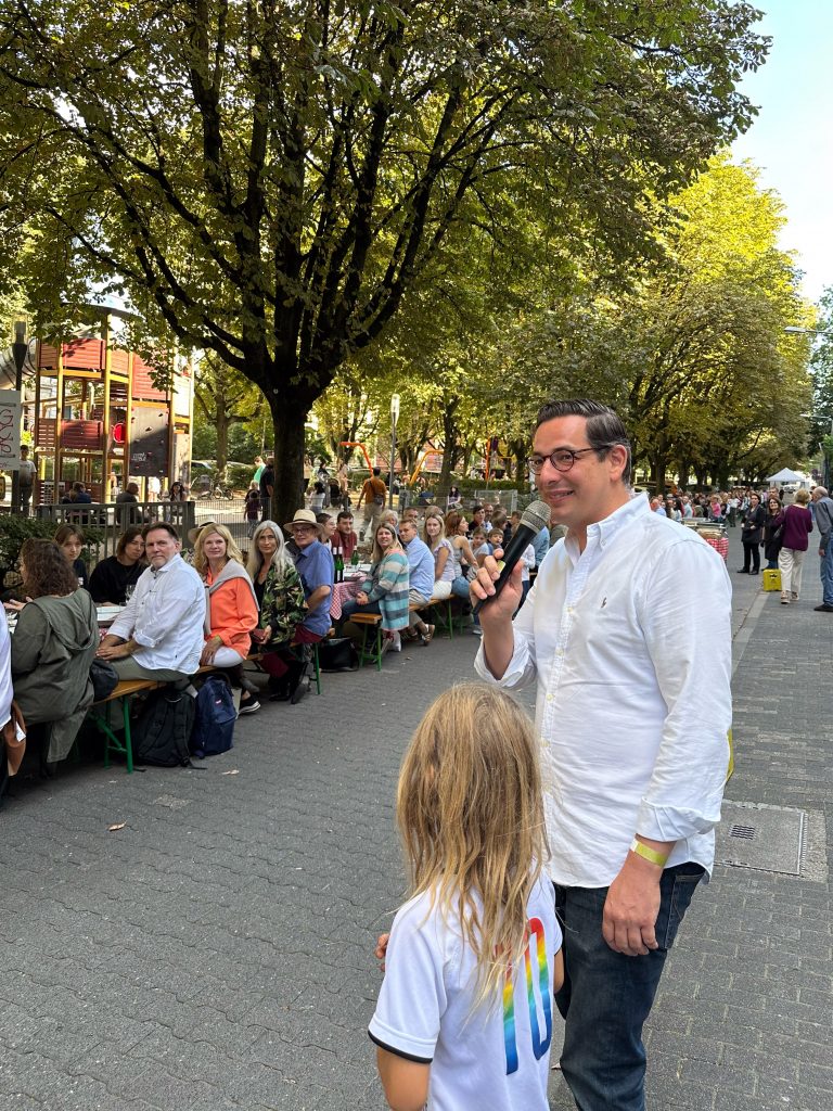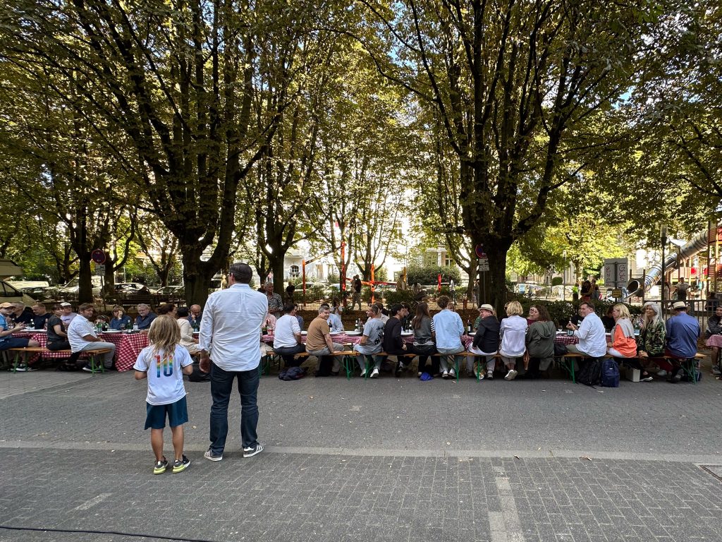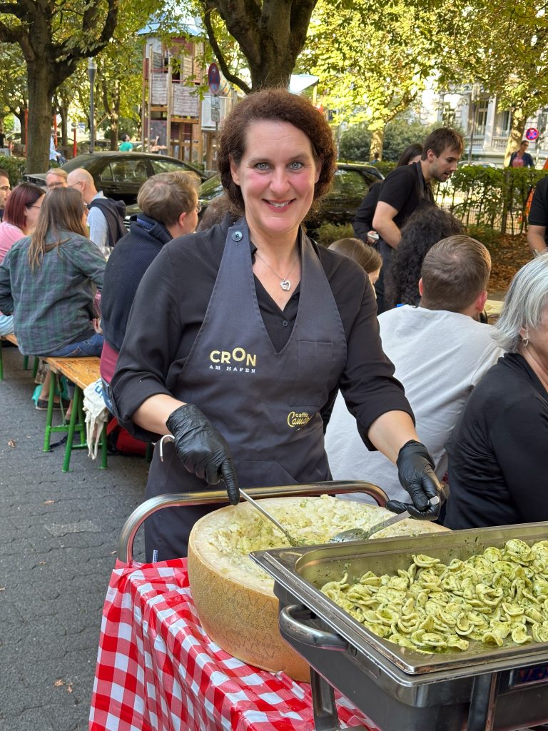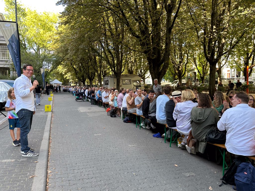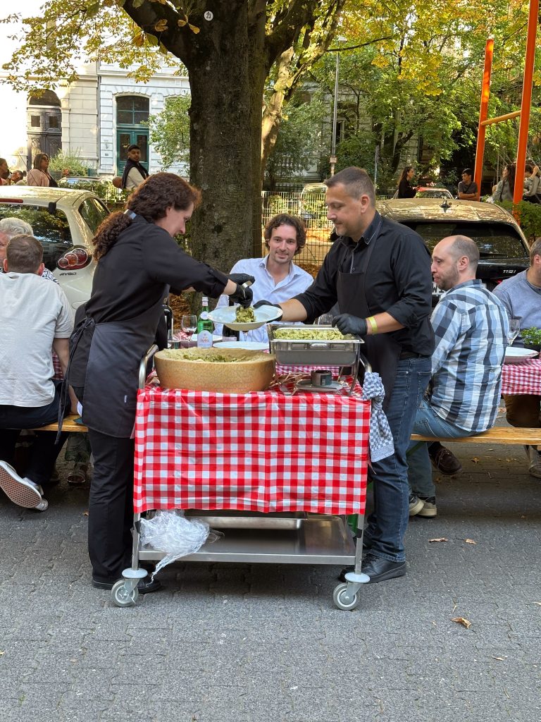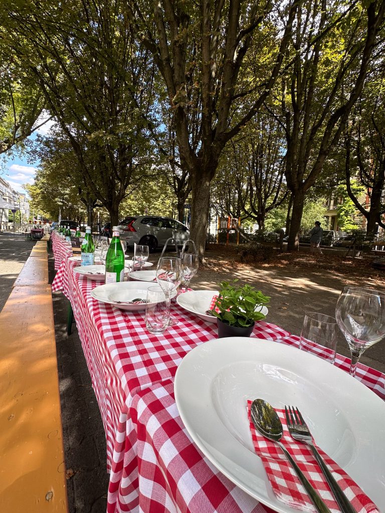 Dominik hat sein Unternehmen (The Platform Group) in der Adolfsallee und jemand fragte, ob man nicht spontan ein Straßenfest machen könnte. So kam es zur Geburt der Pasta Tafel. Im Jahr 2022 konnten wir mit der 1. WIESBADENER PASTA TAFEL 200 Menschen begeistern, im Jahr 2023 bereits 400.