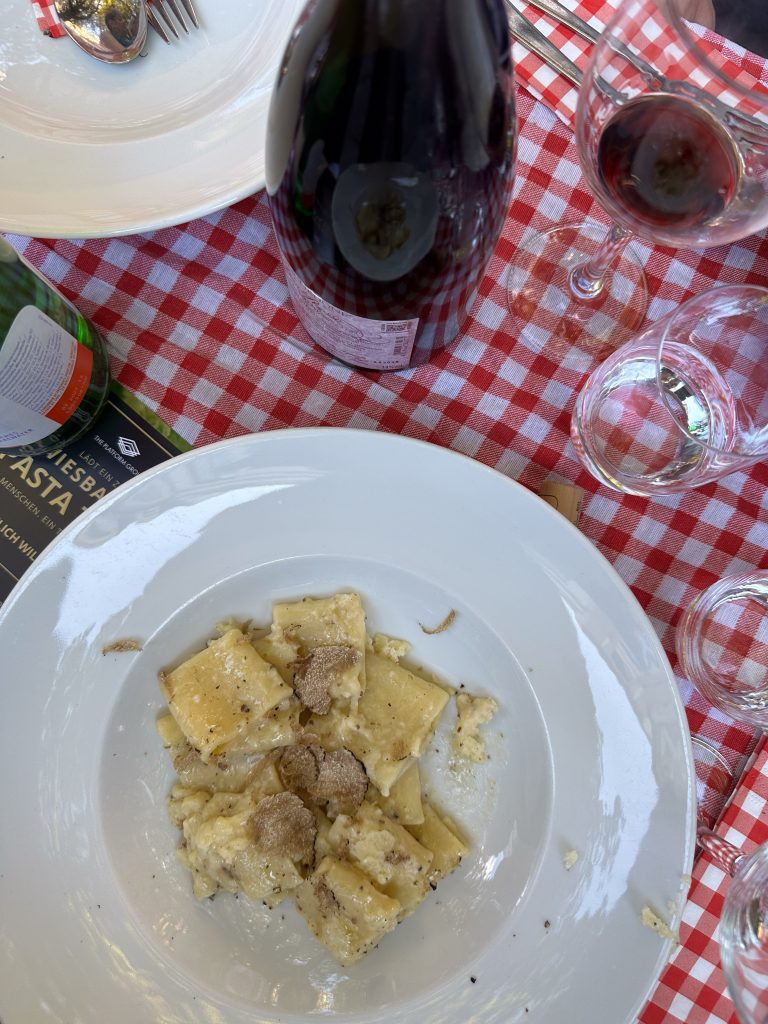 Hausgemachte Pasta, Saucen, Trüffel und Grana Padano.